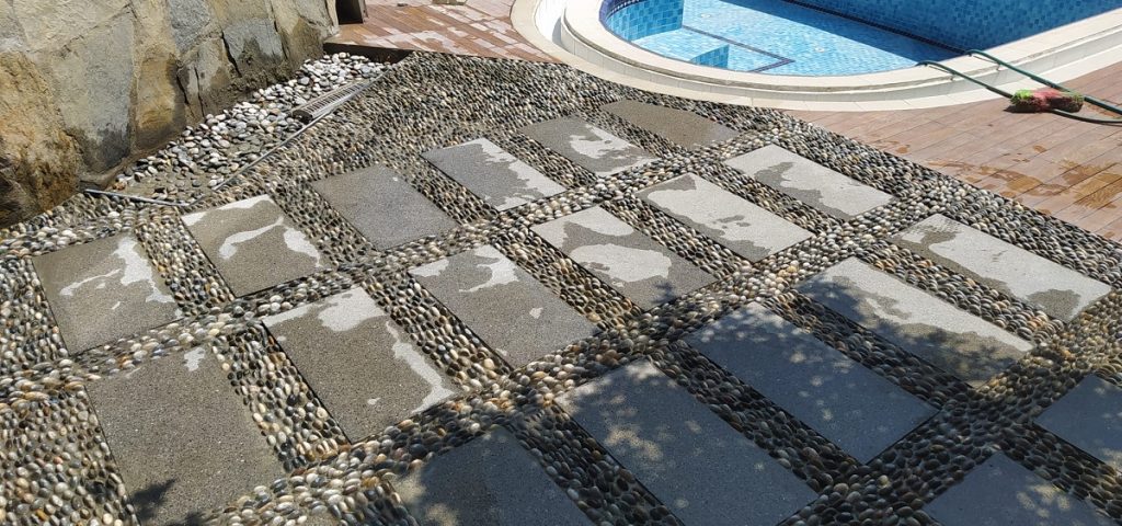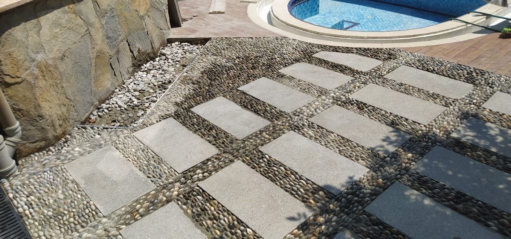 - Havuz Kenarı ve Bahçe Dekorasyonu: Bahçe alanlarında havuz kenarına döşenen podima taşları, şık bir dekorasyon sağlar. Ayrıca suyun etkisiyle kaymayı engelleyen özelliğiyle güvenliği artırır.